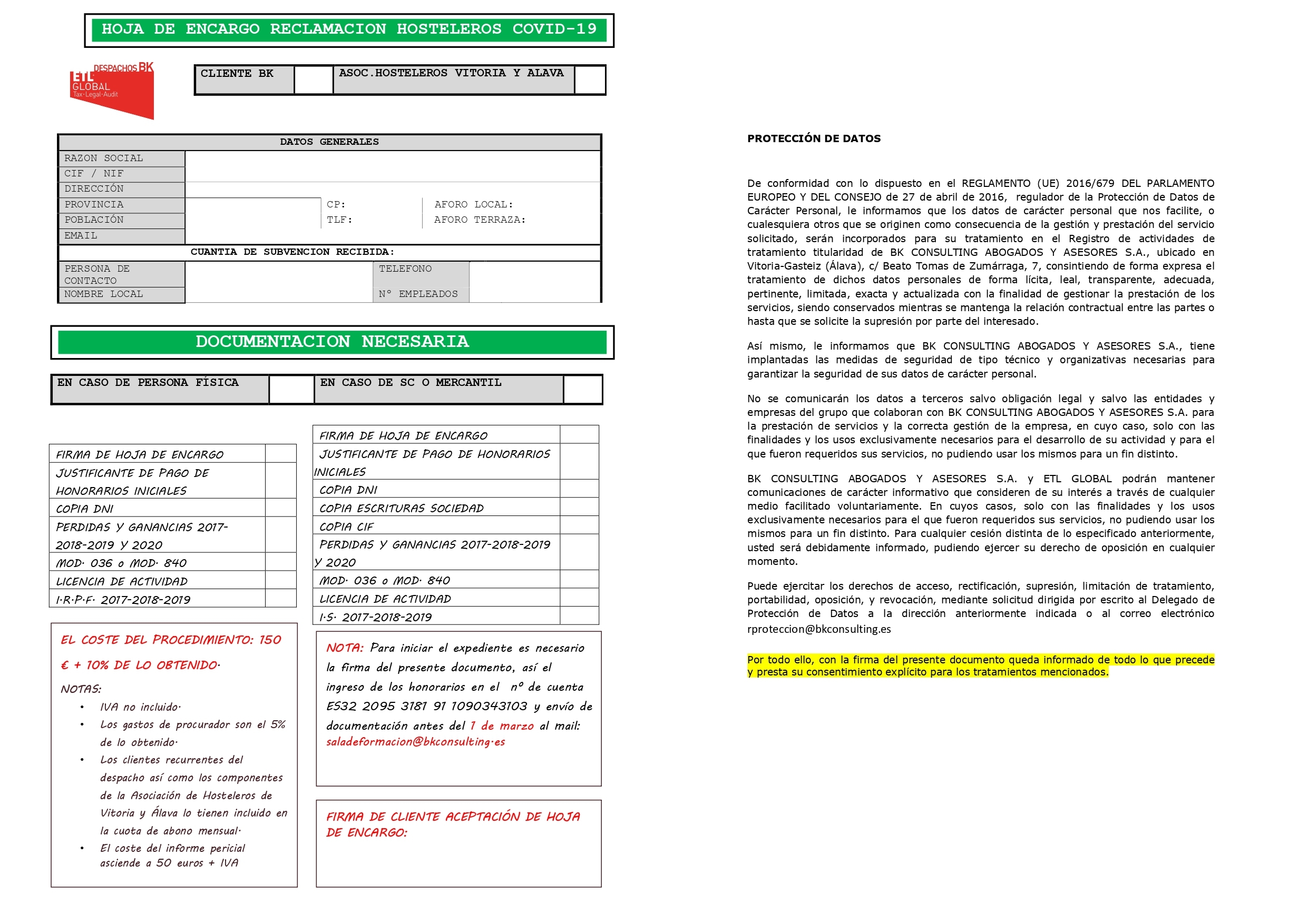 Responsable: BK CONSULTING ABOGADOS Y ASESORES SA. Finalidad: Recogida de datos personales para poder atender a su solicitud. Legitimación: Consentimiento del interesado. Destinatarios: No se cederán datos a terceros, salvo obligación legal y salvo las entidades que colaboran con BK CONSULTING ABOGADOS Y ASESORES SA para la prestación de servicios y la correcta gestión de la entidad en cuyo caso, solo con las finalidades y los usos exclusivamente necesarios para el desarrollo de su actividad y para el que fueron requeridos sus servicios, no pudiendo usar los mismos para un fin distinto. Derechos: Acceder, rectificar o suprimir los datos, así como otros derechos, como se explica en la información adicional en la política de privacidad.